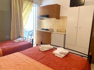 Vila Hara je odlična vila starijeg datuma, na oko 150 metara od mora, plaže, šetališta i centra Pefkija. Sastoji se od studija i apartmana u prizemlju i na prvom spratu sa pogledom na ulicu ili dvorište. Opremljeni su bežičnim internetom, TV – om i klima uredjajem (uračunat u cenu). Dvokrevetni i trokrevetni studiji se nalaze na prvom spratu i sastoje se od kuhinjskog dela, dela sa francuskim ležajem, odnosno sa francuuskim i standardnim, kupatila i terase sa garniturom za sedenje. Veličina studija je cca 16 - 18 kvm + terasa. Trokrevetni dupleks apartmani se nalaze na prvom spratu i u prizemlju, sastoje se od velike kuhinje sa velikim frižiderom i zamrzivačem i šporeta sa ringlama i rernom. Dve spavaće sobe, jedna je sa francuskim, a druga sa standardnim ležajem, kupatilo i velika terasa s pogledom na dvorište i ulicu, na kojoj je garnitura za sedenje. Veličina apartmana je cca 26 kvm + terase. Četvorokrevetni dupleks apartmani se nalaze na prizemlju i na prvom spratu spratu, sastoji se od velike kuhinje sa velikim frižiderom sa zamrzivačem, šporeta sa ringlama i rernom. Dve spavaće sobe, jedna je sa francuskim ležajem, a druga sa dva standardna ležaja, kupatilo i velika terasa sa pogledom na ulicu i dvorište, sa garniturom za sedenje. Veličina apartmana je cca 30 kvm + terase. Četvorokrevetni+1 dupleks apartman se nalazi u prizemlju, sastoji se od velike kuhinje sa velikim frižiderom sa zamrzivačem, šporeta sa ringlama i rernom, kao i velikim plazma televizorom i jednim ležajem (sofa za dete do 15 godina). Dve spavaće sobe, jedna je sa francuskim ležajem, a druga sa dva standardna ležaja, kupatilo i velika terasa s pogledom na ulicu i dvorište, sa garniturom za sedenje. Veličina apartmana je cca 32 kvm + terase. Petokrevetni dupleks apartman se nalazi na prizemlju, sastoj se od kuhinje sa velikim frižiderom sa zamrzivačem, šporeta sa ringlama i rernom, kao i trpezarijskim stolom. Dve spavaće sobe, jedna je sa francuskim i standardnim ležajem, a druga sa francuskim ležajem, kupatilo i velika terasa s pogledom na ulicu i dvorište, sa garniturom za sedenje. Veličina apartmana je cca 32 kvm + terasa. Vila Hara je B + kategorije i ima mogućnost parkiranja na ulici, pored vile.
