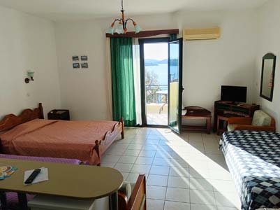 Vila Eleni se nalazi na ulasku u Nidri, u Perigialiju. Od centra je udaljena oko 1750 metara i od naše lokalne agencije oko 1350 metara. Smeštena na lepoj padini, potpuno izdvojena od gradske vreve i saobraćajne gužve, okružena zelenilom i mediteranskim rastinjem, ovu vilu čini posebnom i atraktivnom. Svi studiji su sa pogledom na more, Nidri i arhipelag koji okružuju letovalište. U neposrednoj blizini su dve plaže, desno prema centru, udaljena je od vile oko 200 metara. Levo od vile, na udaljenosti od oko 300 metara nalazi se, možda i najlepša plaža na istočnoj strani ostrva, Pasha beach. U okviru vile se nalaze dvokrevetni studiji sa mogućnosću korišćenja jednog ili dva pomoćna ležaja (uz doplatu od 7 eura dnevno po ležaju), trokrevetni apartman + 1 (sofa uračunata u cenu) i jedan četvortokrevetni studio, sa mogućnošću dodatnog pomoćnog ležaja (uz doplatu od 7 eura dnervno). Na pomoćnim ležajevima i sofi, mogu spavati deca do 12 godina. U svim studijima kao peta osoba, može boraviti i dete do dve godine uz krevetac, koji je besplatan. Dvokrevetni i četvorokrevetni tudiji se nalaze na prvom spratu. Sastoje se od opremljenog kuhinjskog dela, dela za spavanje sa dva standardna ležaja ili francuskim, kupatila i lepe terase sa garniturom za sedenje. Veličina studija je cca 20 – 30 kvm kvm + terasa. Trokrevetni + 1 apartman se nalazi na drugom spratu i ima dva standardna ležaja u maloj spavacoj sobi sa izlaskom na terasu i standardni ležaj i sofu u dnevnom boravku sa kuhinjom. Veličina apartmana je cca 30 kvm kvm + terasa. Svi su opremljeni TV-om, wi – fi Internetom i klima uredjajem (uz doplatu na licu mesta (opcija) 7 eura dnevno). Vila Eleni je B kategorije, ima peškire i ima sopstveni parking. |