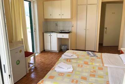 Vila Metropol, starijeg datuma, nalazi se u mirnom okruženju, na oko 100 metara od strogog centra letovališta, oko 150 metara od mora i luke i na oko 550 metara od gradske plaže. Poseduje prostoriju za goste za boravak prvog i poslednjeg dana. Dvokrevetni i trokrevetni studiji, kao i četvorokrevetni apartman se nalaze na drugom spratu i opremljeni su wi - fi internetom, TV-om i klima uredjajem (uz doplatu na licu mesta (opcija), studio 6 eur, apartman 12 eura, dnevno). Studiji se sastoje od manjeg opremljeng kuhinjskog dela, dela za spavanje sa dva ležaja, odnosno manjeg francuskog i standardnog ležaja, kupatila (sa ili bez tuš kabine) i lepe, velike terase sa garniturom za sedenje sa pogledom na dvorište ili mirnu ulicu. Pojedini studiji imaju manji frižider (40 L sa malom komoricom za led). Veliki zajednički frižider sa zamrzivačem se nalazi u hodniku ispred studija i mogu ga koristiti svi gosti sa sprata. Veličina studija je cca 16 - 18 kvm + terasa. Četvorokrevetni apartman sa dva klima uredjaja i dva TV-a (u svakoj sobi po jedan) se sastoji od prve spavaće sobe kroz koju se ulazi u apartman, sa dva ležaja ili manjim francuskim i druge spavaće sobe u kojoj je manja opremljena kuhinja i dva ležaja ili manji francuski ležaj, odvojenog WC-a i kupatila za tuširanje (bez ogradjene tuš kade). Na lepu veliku terasu sa garniturom za sedenje i pogledom na dvorište, može se izaći iz obe sobe. Veličina apartmana je cca 25 kvm + terasa. Vila Metropol je skromne B kategorije i ima peškire. Preko puta Metropola se nalazi parking koji se plaća.