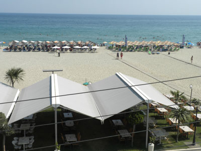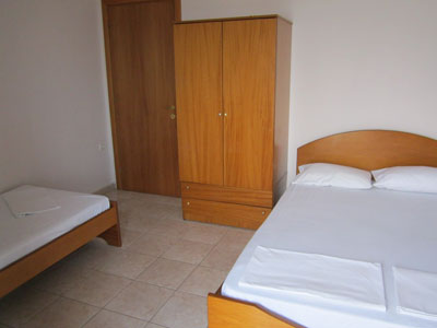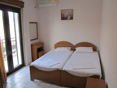 Vila Vasilas se nalazi na jednoj od najboljih lokacija, na plaži, u centru letovališta, blizu crkve. Starijeg je datuma, a prvi sprat je renoviran pre nekoliko godina. Ono što posebno izdvaja ovu vilu, to je njena izuzetna pozicija i studiji i apartmani koji svi imaju pogled na more, direktan ili bočni. Prostrani dvokrevetni i trokrevetni studiji su sa TV-om, klima uredjajem (uz doplatu na licu mesta (opcija), 6 eur dnevno po apartmanu (u 1/2 i 1/3)) i sastoje se od opremljene kuhinje, dela za spavanje sa dva ležaja ili francuskim i standardnim ležajem, kupatila i lepih terasa sa garniturom za sedenje. Veličina studija je cca 18 – 25 kvm + terasa. Četvorokrevetni, petokrevetni i šestokrevetni apartman se sastoji iz prostorije sa kuhinjom u kojoj su takodje, francuski i standardni ležaj i spavaće sobe sa francuskim i standardnim ležajem (u svakoj prostoriji se nalazi poseban klima uredjaj (uz doplatu na licu mesta (opcija), 12 eur dnevno po apartmanu – dva klima uredjaja) i TV, kupatila i velike prostrane terase sa direktnim ili bočnim pogledom na more. Veličina apartmana je cca 30 kvm + terasa. Šestokrevetni duplex apartman se sastoji iz kuhinje, dve spavaće sobe sa po francuskim i standardnim ležajem (u svakoj sobi se nalazi poseban klima uredjaj (uz doplatu na licu mesta (opcija), 12 eur dnevno po apartmanu – 2 klima uredjaja) i TV, kupatila i velike prostrane ugaone terase sa direktnim i bočnim pogledom na more. Veličina apartmana je cca 30 kvm + terasa. U vili Vasilas, prvi sprat je B+ kategorije, a drugi B kategorije i ima mogućnost sopstvenog parkinga preko puta vile. U studijima i apartmanima je na raspolaganju wi – fi Internet. |