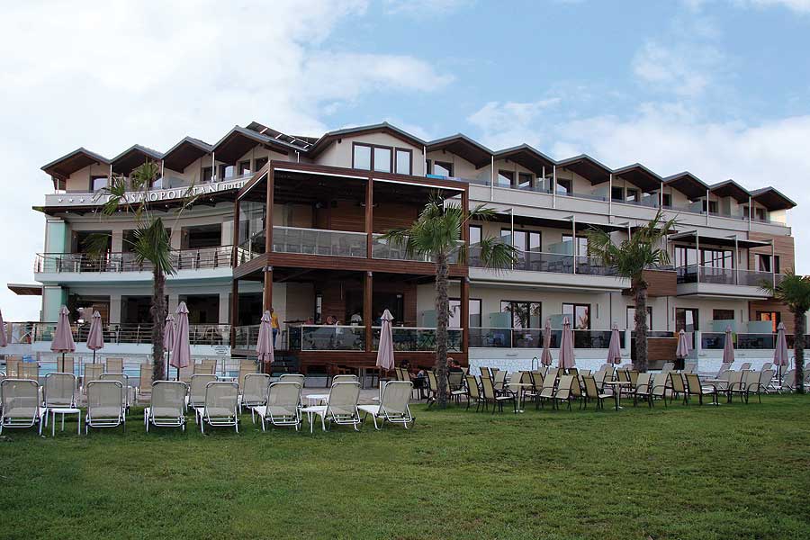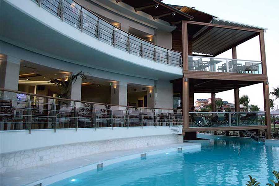 | Hotel Cosmopolitan je izgradjen 2011. i nalazi se na ulazu u Paraliju (iz pravca Korinosa), na oko 200 metara od plaže. Hotel ima recepciju, bar, parking, bazen, restoran, otvoreni bazen, SPA centar (korišćenje zatvorenog bazena, teretane i parnog kupatila je uključeno u cenu, dok se razne masaže i tretmani doplaćuju po cenovniku SPA centra), wi-fi Internet u javnim delovima hotela (besplatno)... Suncobrani i ležaljke oko bazena su uključeni u cenu. Sve sobe su opremljene TWC sa fenom, A/C-om, SAT TV-om, mini barom, telefonom, sefom, krevecom (na upit, bez doplate), wi-fi Internetom (besplatno) i imaju terasu (osim odredjnog broja soba, koje su posebno iskazane u cenovniku-promo sobe: nalaze se u suterenu i nemaju terasu). Standardne sobe su veličine su cca 16-18 kvm i namenjene su za 2 osobe (2 standardna ili "francuski" ležaj). Superior sobe su veličine cca 18-22 kvm i namenjene su za 2-4 osobe (2 standardna ili "francuski" ležaj i sofa na rasklapanje). Usluga u hotelu Cosmopolitan je polupansion – “švedski sto” (samoposluživanje). |