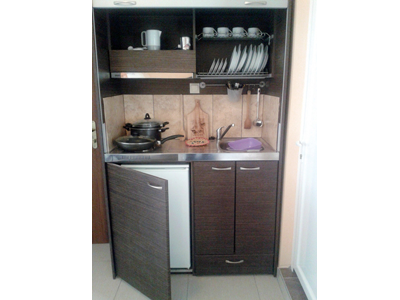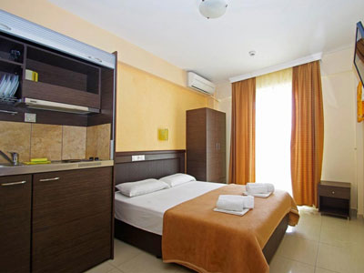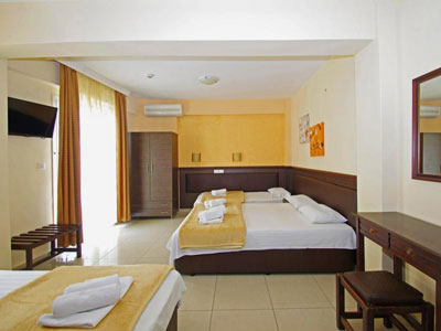 Hotel apartmanskog tipa, Hellas, je odličan objekat, smešten u srcu Paralije na oko 150 metara od plaže. Hotel od sadržaja ima recepciju, restoran, restoransku terasu, bar, toalet za poslednji dan boravka i lift. Sabra u ovoj vili ima studije na drugom spratu sa pogledom na dvorište ili ulicu. Dvokrevetni, trokrevetni i četvorokrevetni studiji su kompletno renovirani pre nekoliko godina i sastoje se iz dela za spavanje u okviru kojeg se nalaze standardni i/ili francuski ležajevi, čajne opremljene kuhinje, kupatila i lepe terase sa tendom i garniturom za sedenje. Studiji su opremljeni LCD TV – om (Total TV sa jednim srpskim kanalom), klima uredjajem (uz doplatu na licu mesta (opcija), 7 eur dnevno po studiju) i wi - fi Iternetom. Svi studiji imaju komarnike. Veličina studija je cca 14 - 24 kvm + terasa. Hotel poseduje i sobu za invalide. Ukoliko se odlučite za ovu vilu (hotel), odabrali ste jednu od najkvalitetnijih vila u Paraliji. Apartmanski hotel Hellas je po proceni agencije B + kategorije (zvanicno 3*), nema peškire i nema mogućnost sopstvenog parkinga (parkiranje na ulici ispred). Postoji mogućnost uplate polupansiona (uz doplatu na licu mesta po cenovniku hotela). Vlasnik hotela odlično govori srpski jezik. |