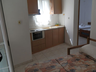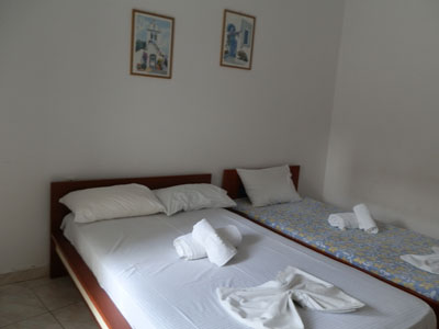 Sastoji se od nekoliko vila, u lepom, zelenom ambijentu, okruženih cvećem i mediteranskim rastinje. U lepom, mirnom dvorištu se nalazi trem sa stolom i stolicama, zajednički zidani roštilj i tuš. Vila Papadopulos se nalazi na oko 400 metara od centra Polihrona, u mirnom delu (prema Haniotiju) i na oko 190 metara od plaže. Apartmani se nalaze na visokom prizemlju i prvom spratu, imaju SAT TV sa najmanje jednim srpskim kanalom, klima uredjaj (uračunat u cenu) i wi - fi Internetom i velikim frižiderom sa zamrzivačem u kuhinji. Trokrevetni + 1 apartmani se nalaze na visokom prizemlju i prvom spratu, imaju jednu spavaću sobu sa dva standardna ležaja, kuhinju (mali šporet sa rernom) sa jednim ležajem iz kojeg se izvlači dodatni ležaj (skoro kao pravi), kupatilo i terasu sa garniturom za sedenje. Veličina apartmana je cca 23 kvm + terasa. Trokrevetni + 2 apartman se nalazi na visokom prizemlju i sastoji se od kuhinje (mali šporet sa rernom) u kojoj se nalazi sofa na otvaranje (za jednu odraslu osobu ili dvoje dece do 12 godina), spavaće sobe sa jednim standardnim i jednim francuskim ležajem, kupatila sa manjom kadom i dve terase, sa jednom garniturom za sedenje. Sofa koja se otvara u kuhinji bitno smanjuje prostor i komfor, te je potrebno da tokom dana bude sklopljena. Veličina apartmana je cca 23 kvm + terase. Četvorokrevetni + 2 apartman se nalazi na prvom spratu, ima spavaću sobu sa francuskim ležajem, kuhinju (šporet sa rernom) sa sofom i proširenim ležajem (oba ležaja za jednu odraslu osobu ili dvoje dece do 12 godina), kupatilo i veliku terasu sa garniturom za sedenje. Veličina apartmana je cca 26 kvm + terasa. Vila Papadopulos je B kategorije, nema peškire, a besplatan parking se nalazi preko puta vile ili niže ka moru. |