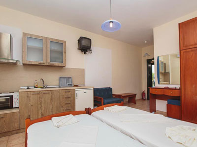 Vila novijeg datuma, smeštena izmedju centra letovališta (udaljena oko 250 metara) i plaže Galikos Molos (oko 350 metara). Vila Hara se nalazi u mirnom i tihom delu Sivote, u lepom mediteranskom vrtu sa dodatnim sadržajima poput nekoliko prijatnih kutaka za sedenje, roštiljem, ležaljkama... Sabra ima studije na prvom spratu. Dvokrevetni + 1 studiji sadrže opremljeni kuhinjski deo, deo sa dva ležaja ili manji francuski i fotelju na otvaranje (za dete do 12 godina), kupatilo i lepu terasu sa garniturom za sedenje. Veličina studija je cca 17 - 19 kvm + terasa. Svi studiji su opremljeni klima uredjajem (uz doplatu na licu mesta (opcija) 5 eura dnevno po studiju), wi – fi Internetom za ograničeni broj korisnika i TV – om. Vila Hara je B + kategorije, ima peškire i nema sopstveni parking. |