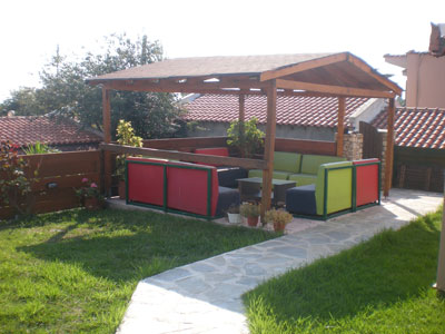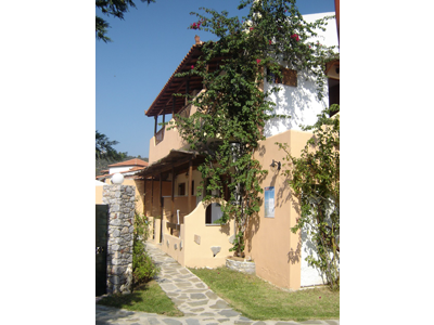 Vila Amy se nalazi pored hotela Esperides, na nešto manje od oko dva i po kilometra od grada Skiatosa i na oko 130 metara od plaže Ahladia. Dvokrevetni i trokrevetni studiji su u prizemlju i na prvom spratu, okruženi lepim travnatom vrtom sa puno cveća, tremom i stolovima sa suncobranima. Ovi tipični ostrvski studiji sadrže opremljenu kuhinju, deo za spavanje sa dva i tri ležaja ili manjim francuskim i jednim standardnim, kupatilo i terasu sa garniturom za sedenje. Svi studiji Amy su opremljeni TV - om i klima uredjajem (uračunat u cenu). Veličina studija je cca 16 - 20 kvm + terasa. Preko puta vile se nalazi hotel Belvedere gde svi gosti mogu besplatno koristiti bazen (uz obavezu jednog pića). Vila Amy je B + kategorije, ima peškire i nema mogućnost sopstvenog parkinga. Najbliži mini market je udaljen oko 20 metara, a restoran oko 100. Izuzetno ljubazni domaćini, blizina plaže i prelep vrt su najbolja preporuka za ovu vilu. |