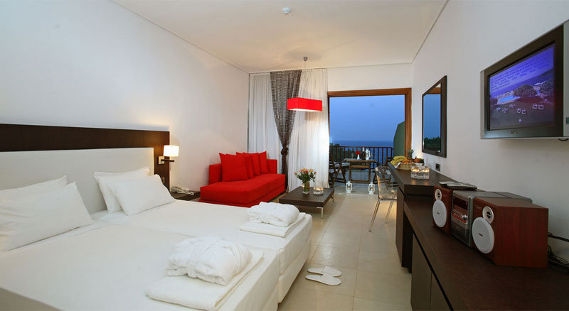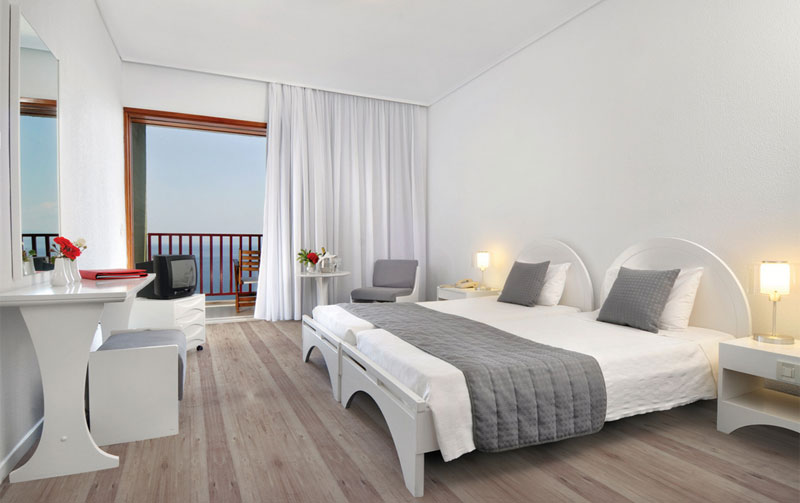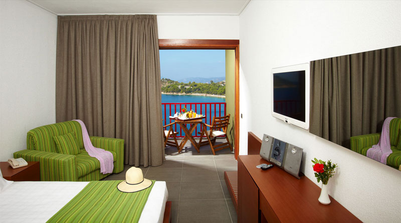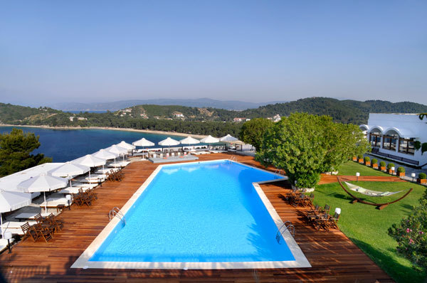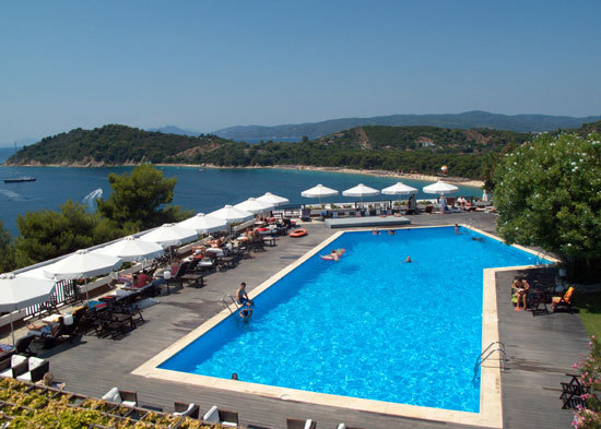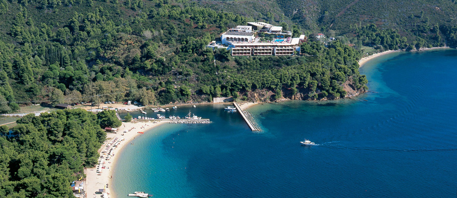 Skiathos Palace je monumentalan hotele starijeg datuma, udaljen od grada Skiatosa oko 12 kilometara, nalazi se na oko 300 metara, od čuvene Kukunaries plaže i ima pogled na Strofilija jezero koje, zajedno sa Kukunaries zalivom, čini zaštićeni prirodni rezervat. Hotel se nalazi iznad sopstvene plaže (Martha Beach, oko 150 metara), a stanica lokalnog autobusa za grad Skiatos je u neposrednoj blizini (oko 100 metara). U hotelskoj taverni moguće je uživati u morskim i grčkim specijalitetima, a gostima je na raspolaganju i bar pored velikog bazena sa fantastičnim pogledom na zaliv i ostrvo Evia. Hotel ima nekoliko restorana i barova, kafeteriju, dva bazena (jedan dečji), dečje igralište, sefove na recepciji (uz doplatu na licu mesta), menjačnicu, rent a car, wi-fi Internet u javnim delovima hotela (uz doplatu na licu mesta), prodavnicu suvenira, stoni tenis, sportove na vodi, ronilačku školu u blizini, parking… Ležaljke i suncobrani oko bazena su uključeni u cenu, a na plaži se doplaćuju 8 eura (set: 2 ležaljke i suncobran). Peškiri oko bazena su na raspolaganju besplatno i bez depozita. Kukunaries plaža nosi Plavu zastavu, najlepša je na Skiatosu, jedna je od najlepših plaža Grčke, ali i Evrope. Na plaži postoji mogućnost sportova na vodi, kao i puno barova ali i prirodne borove hladovine. Classic sobe su veličine cca 30-35kvm, namenjene za 2-4 osobe ("francuski" i pomoćni ležaj) i sadrže: TWC sa fenom, A/C (uračunat u cenu u julu i avgustu), SAT TV, radio, telefon, mini bar i terasu sa pogledom na more. Modern sobe su renovirane, veličine su cca 32 kvm, namenjene su za 2-4 osobe (2 standardna ili "francuski" i pomoćni ležaj) i sadrže: TWC sa fenom, A/C (uračunat u cenu u julu i avgustu), SAT TV, wi-fi Internet (uz doplatu na licu mesta), radio, telefon, mini bar i terasu sa pogledom na baštu ili more. Superior sobe su renovirane, veličine su cca 30 kvm, namenjene su za 2-3 osobe (2 standardna ili "francuski" i pomoćni ležaj) i sadrže: TWC sa fenom, A/C (uračunat u cenu u julu i avgustu), SAT LCD TV, wi-fi Internet (uz doplatu na licu mesta), sef (uz doplatu na licu mesta), radio, telefon, mini bar i terasu sa pogledom na prelepu Kukunaries plažu. Executive sobe su renovirane, veličine su cca 36-45 kvm, namenjene su za 2-3 osobe (2 standardna ili "francuski" i pomoćni ležaj) i sadrže: TWC sa fenom, A/C (uračunat u cenu u julu i avgustu), SAT LCD TV, wi-fi Internet (uz doplatu na licu mesta), sef (uz doplatu na licu mesta), radio, telefon, mini bar i veliku terasu sa ležaljkama sa koje se pruža panoramski pogled na more. Usluga u hotelu Skiathos Palace je polupansion – “švedski sto” (samoposluživanje). |