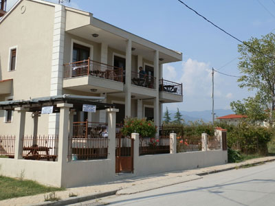 Vila Lilis je novijeg datuma i nalazi se na svega oko 150 metara od centralnog dela uredjene “gradske” plaže i na oko 500 metara od centra letovališta. Ima lepo malo dvorište u kojem je i zajednički trem sa stolovima, zidani roštilj, ljuljaške za decu i nekoliko ležaljki sa suncobranom. Sastoji se od apartmana na izdignutom prizemlju sa pogledom ka moru. Opremljeni su wi - fi Internetom, TV – om i klima uredjajem (uz doplatu na licu mesta (opcija), 7 eur dnevno po apartmanu). Trokrevetni apartmani sadže kuhinju u kojoj se nalazi jedan standardni ležaj, spavaću sobu sa manjim francuskim ležajem, kupatilo i lepu terasu sa garniturom za sedenje i pogledom na more. Veličina apartmana je cca 18 - 20 kvm + terasa. Neveliki četvorokrevetni apartmani sadrže kuhinju u kojoj je manji francuski ležaj, spavaću sobu sa manjim francuskim ležajem, kupatilo i lepu terasu sa garniturom za sedenje i pogledom na more. Veličina apartmana je cca 23 kvm + terasa. Vila Lilis je A kategorije, nema peškire i ima mogućnost parkinga na ulici pored vile. |