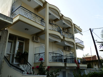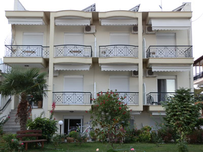 Vila Voula je novijeg datuma i nalazi se na svega nekoliko metara od dela uredjene plaže i na oko 160 metara od centra letovališta. Zahvaljujući tome, ima jednu od najboljih pozicija u letovalištu. Ima lep uredjeni vrt prepun mediteranskog cveća i rastinja i sastoji se od studija i apartmana na visokom prizemlju i prvom spratu, sa pogledom na more ili dvorište pozadi vile. Opremljeni su wi - fi Internetom, TV – om, mrežom za komarce i klima uredjajem (uz doplatu na licu mesta (opcija), 4 eur dnevno po studiju). Dvokrevetni i trokrevetni studio sadži kuhinjski deo, deo sa francuskim i standardnim ležajem, kupatilo i lepu terasu sa garniturom za sedenje i pogledom na more ili dvorište. Veličina studija je cca 17 - 19 kvm + terasa. Četvorokrevetni studio sadrži kuhinjski deo, deo sa francuskim i dva standardna ležaja na sprat, kupatilo i lepu terasu sa garniturom za sedenje i pogledom na dvorište ili more. Veličina studija je cca 20 - 22 kvm + terasa. Petokrevetni apartman pored kupatila i kuhinjskog dela ima deo sa francuskim i standardnim ležajem, kao i spavaću sobu sa francuskim ležajem, i veliku lepu terasu sa garniturom za sedenje i pogledom na more. Veličina apartmana je cca 30 kvm + terasa. Vila Voula je B + kategorije, ima peškire i ima mogućnost parkinga na parkingu ispred vile. |