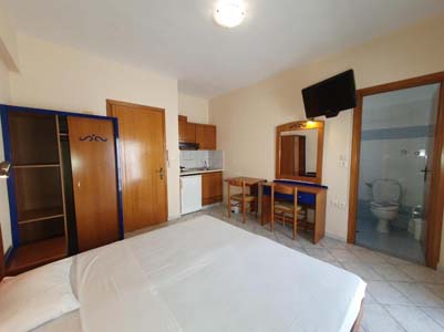 Vila Bay Studios se nalazi u Potosu, na domak centra letovališta i plaže na oko 290 metara udaljenosti. Pored odlicne lokacije i mirnog okruženja, u vreme školskog raspusta, vila ima mogucnost besplatnog parkiranja preko puta, u školskom dvorištu. Sabra u vili raspolaže studijima i apartmanima na prvom spratu, sa pogledom na mirnu (slepu) ulicu ili bocno ka susednom objektu i dvorištu. Dvokrevetni i trokrevetni studiji sadrže kuhinjski deo, francuski ležaj ili dva standardna, odnosno ferancuski i standardni ili tri standardna ležaja, kupatilo i terasu sa garniturom za sedenje. Velicina studija je cca 16 - 20 kvm + terasa. Dvokrevetni + 1 studio pored standardnih ležajeva ima i pomocni ležaj za dete do 12 godina. Cetvorokrevetni i petokrevetni apartmani sa dva klima uredjaja, sastoje se od hodnika, spavace sobe sa dva ili tri ležaja, sobe sa kuhinjskim delom u kojem se nalaze dva standardna ležajai, kupatila i dve terase sa jednom garniturom za sedenje. Velicina apartmana je cca 28 - 32 kvm + terase. Cetvorokrevetni + 2 apartman pored standardnih ležajeva u svakoj prostoriji ima i po jedan pomocni ležaj ya decu do 12 godina. Svi studiji i apartmani su opremljeni TV – om bokalom za grejanje tople fode, wi – fi Internetom i klima uredjajem (uracunat u cenu). Vila Bay Studios je kvalitetne B kategorije i ima peškire. Preporucujemo porodicama sa jednim ili dvoje dece koje vole miran i opuštajuci odmor.