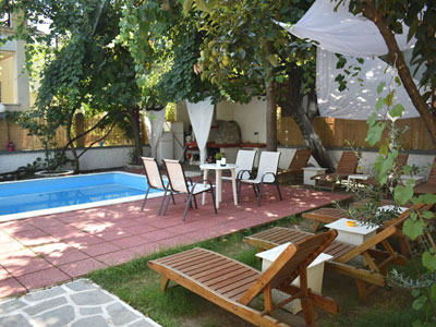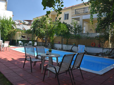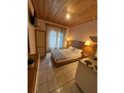 Vila Helios Garden se nalazi u Limenasu, na domak centra letovališta (oko 350 metara) i na oko 900 metara od gradske plaže. Pored odlične lokacije i mirnog okruženja, vila ima lep, veliki bazen (bez dela za decu) sa ležaljkama i suncobranima (uračunati u cenu), malu recepciju sa lobijem, malo igralište za decu, zidani roštilj koji je na raspolaganju svim gostima i dva parkinga. Sabra u vili raspolaže studijima i apartmanima na prvom spratu, sa pogledom na bazen ili mirnu (slepu) ulicu. Dvokrevetni studiji sadrže kuhinjski deo, francuski ležaj, kupatilo i terasu sa garniturom za sedenje. Veličina studija je cca 16 - 18 kvm + terasa. Četvorokrevetni apartman sa dva kupatila, dva klima uredjaja i dva frižidera se sastoji od ulazne spavaće sobe u kojoj se nalazi TV i klima uredjaj, sobe iz koje se izlazi na terasu i u kojoj je i kuhinjski deo i terase sa garniturom za sedenje. Veličina apartmana je cca 32 kvm + terasa. Svi studiji i apartmani su opremljeni francuskim ležajevima, plazma TV – om wi – fi Internetom i klima uredjajem (uz doplatu na licu mesta, (opcija), 6 eur dnevno po studiju (std 1/2), 10 eur dnevno po apartmanu (apt 1/4)). Vila Helios Garden je B kategorije i ima sopstveni parking. Preporučujemo porodicama sa jednim ili dvoje dece koje vole miran i opuštajući odmor i druženje pored bazena, uz roštilj. |