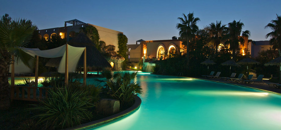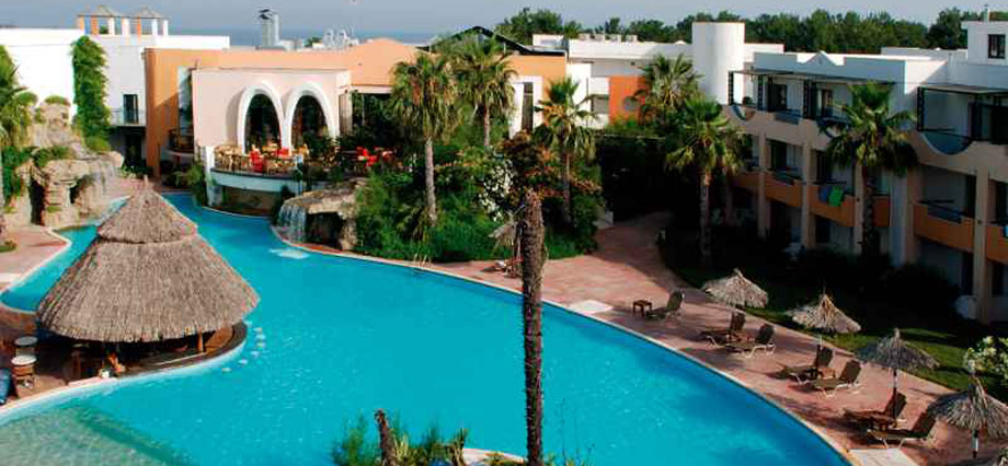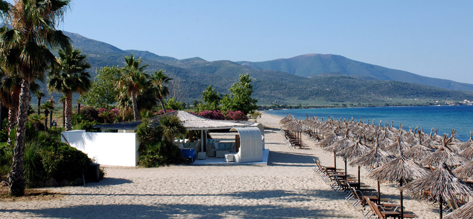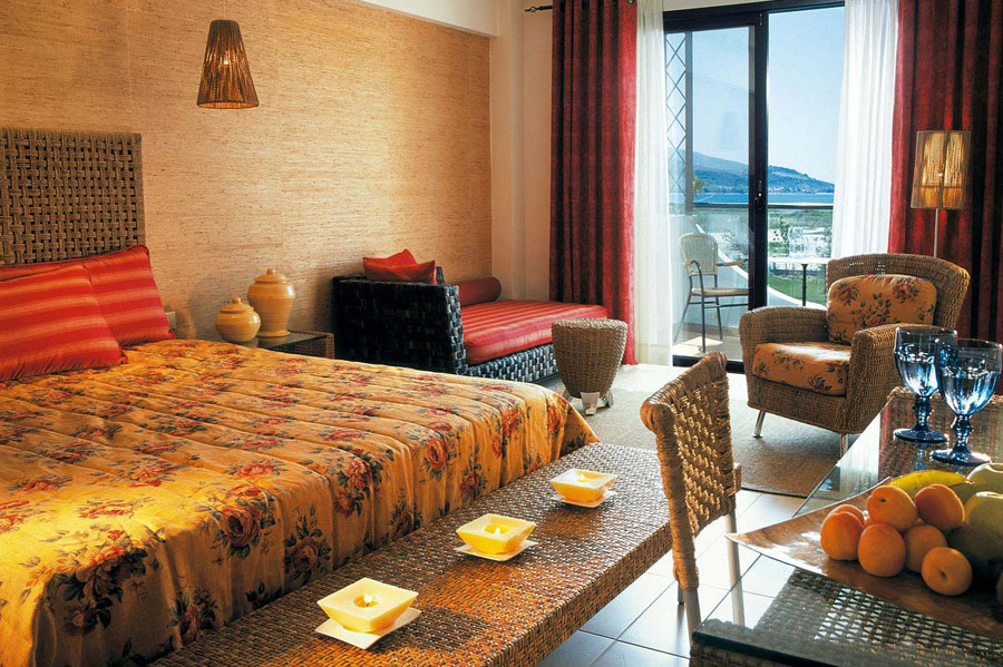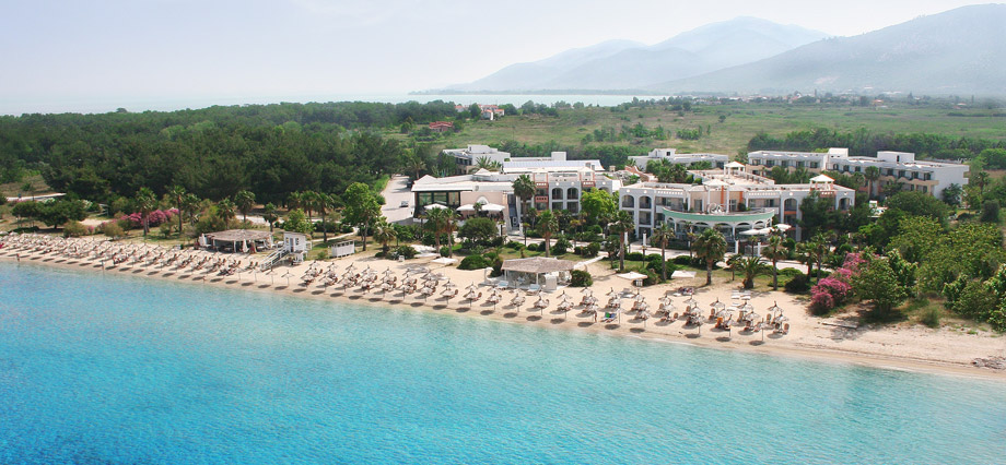 Izvanredan hotel starijeg datuma, nalazi se nedaleko od letovališta i luke Skala Prinos (oko 2 kilometra) i na oko 18 kilometara od Limenasa, okružen zelenilom, na sopstvenoj plaži. Nalazi se na spisku najluksuznijih 100 hotela u Grčkoj. U okviru hotela nalazi se parking, bazen sa barom, dečiji bazen, recepcija, wi-fi Internet u javnim delovima hotela (uz doplatu na licu mesta), 2 restorana i tavernu, fitnes klub i teretanu (uz doplatu na licu mesta), teniski teren (uz doplatu na licu mesta), terena za odbojku na plaži, lobi bar, welness centar (za razne tretmane i masaže - uz doplatu na licu mesta), igralište i mini klub za decu... Suncobrani i ležaljke oko bazena su uključeni u cenu, a na plaži se doplaćuju oko 7 eur dnevno (set: 2 ležaljke i suncobran). Peškiri za plažu se iznajmljuju uz depozit. Sobe su opremljene A/C, SAT TV-om, imaju TWC, telefon, fen, sef, krevetac (na upit, uz doplatu na licu mesta), mini bar i terasu. Standardne sobe gledaju na dvorište/maslinjake ili na more, veličine su cca 20 kvm namenjene su za 2-3 osobe (2 standardna ili "francuski" ležaj i pomoćni ležaj). Superior sobe imaju pogled na baštu, veličine su 40 kvm, namenjene su za 2-4 osobe i sastoje se iz kombinovane dnevno-spavaće sobe (2 standardna ili "francuski" ležaj i pomoćni ležaj/sofa). Junior suite su istog sadržaja kao i superior sobe, a imaju bočni pogled na more. Porodične sobe (family room) imaju pogled na baštu i namenjene su za 2-4 osobe i sastoje se iz 2 standardne sobe povezane kliznim vratima, imaju 2 kupatila. Suite sa pogledom na baštu su veličine cca 60 kvm, namenjene su za 2-4 osobe i sastoje se iz spavaće sobe (2 standardna ili "francuski" ležaj) i dnevnog boravka  (pomoćni ležaj/sofa) odvojenog kliznim vratima. Suite sa pogledom na more su veličine cca 40 kvm, namenjene su za 2-4 osobe i sastoje se iz spavaće sobe (2 standardna ili "francuski" ležaj) i dnevnog boravka  (pomoćni ležaj/sofa) odvojenog zavesom. Usluga u hotelu je polupansion: doručak i večera –“švedski sto” (samoposluživanje).