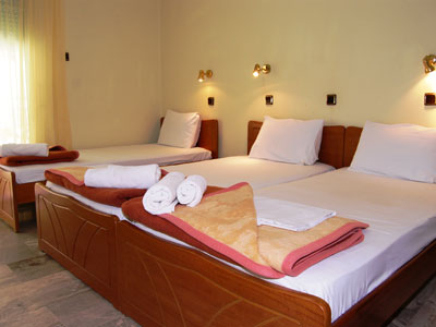 Vila Vaso, starijeg datuma i odlične pozicije, nalazi se u Potosu, (oko tridesetosam kilometara od Limenasa), u strogom centru gradića na četrdesetak metara od prelepe peščane plaže i šetališta uz more. Odlična pozicija. Trokrevetni studiji su okrenuti ka pešačkoj zoni sa bočnim pogledom na more, kao i deo dvokrevetnih (u sezoni može biti bučno). Ostali gledaju ka dvorištu. Posebno se ističe trokrevetni + 1 studio na trećem spratu, sa velikom terasom i pogledom na more i plažu San Antonio, u nastavku Potos polaže. Studio sadrži opremljen kuhinjski deo, deo za spavanje sa francuskim ležajem i jednim proširenim (120 cm koji mogu deliti odrasla osoba i dete do 12 godina), kupatilo i terasu sa garniturom za sedenje. Veličina studija je cca 22 kvm + terasa i opremljeni su klima uredjajem (uz doplatu na licu mesta (opcija), 6 eur dnevno po studiju), wi – fi Internetom i TV – om. Vila Vaso je B kategorije, ima peškire i nema mogućnost sopstvenog parkinga. |