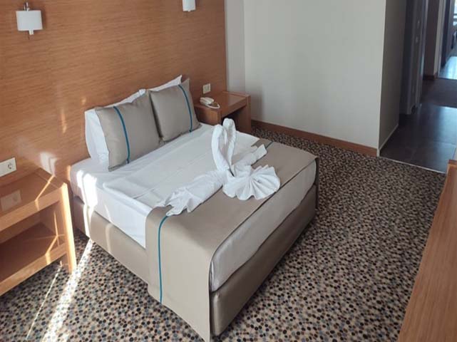 U standardnoj i sobi sa pogledom na more dete 0-7 g. (kao 3. osoba u sobi) deli zajednički ležaj. |